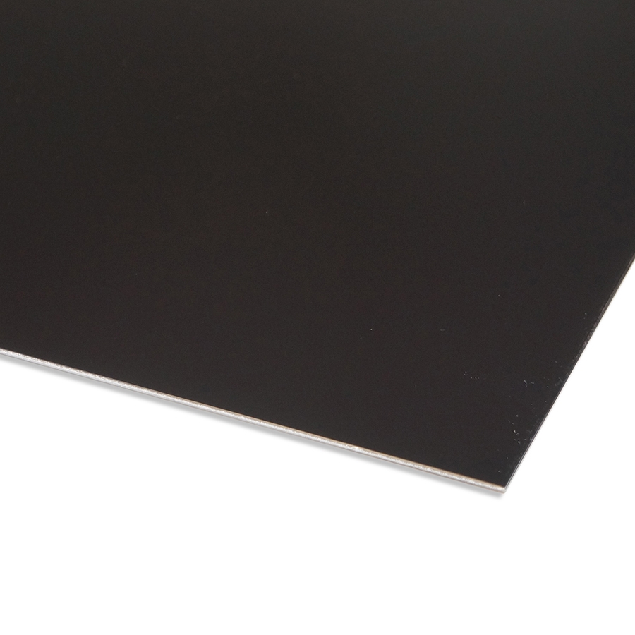 Die Aluminium Platte ist einseitig schwarz gemalt. RAL9005.